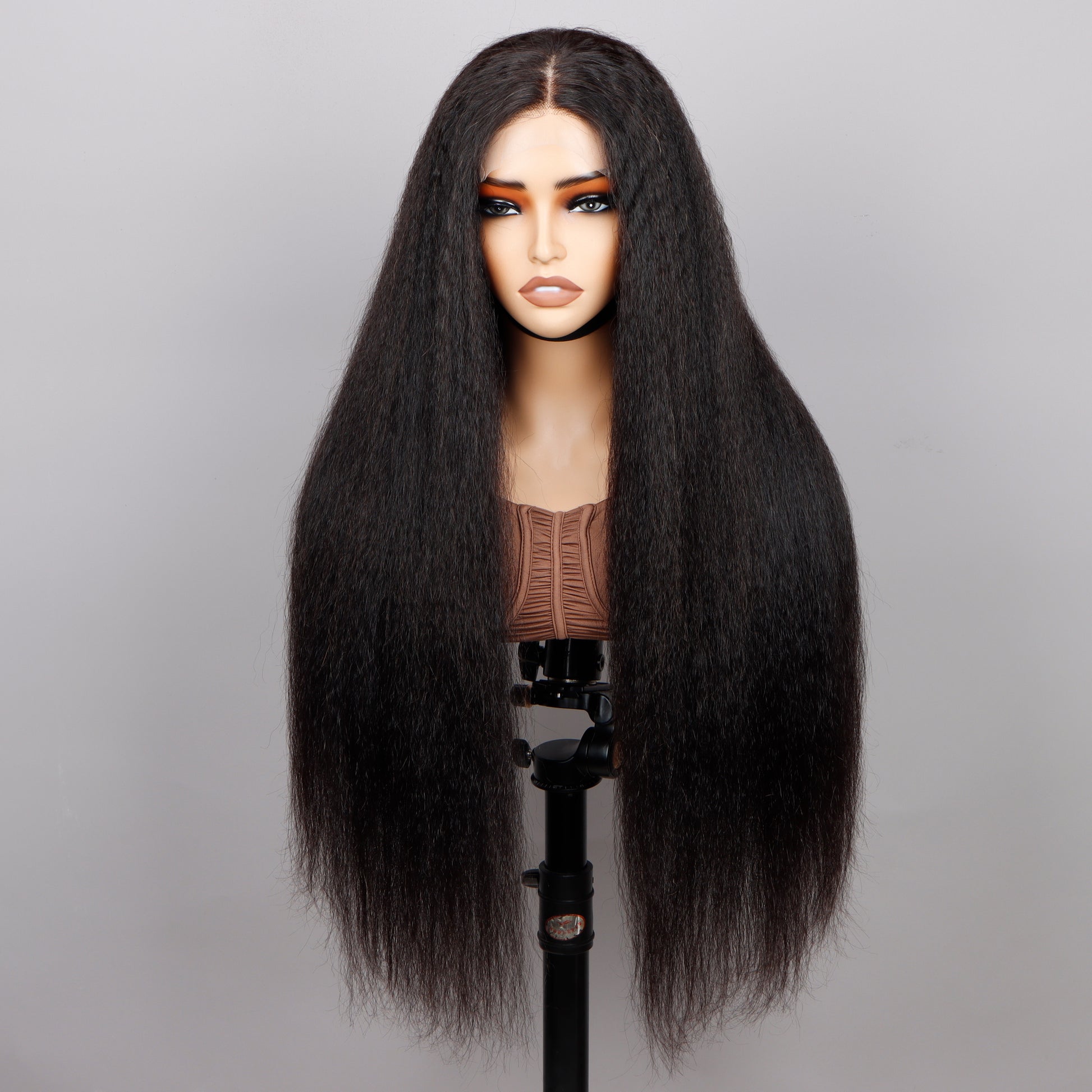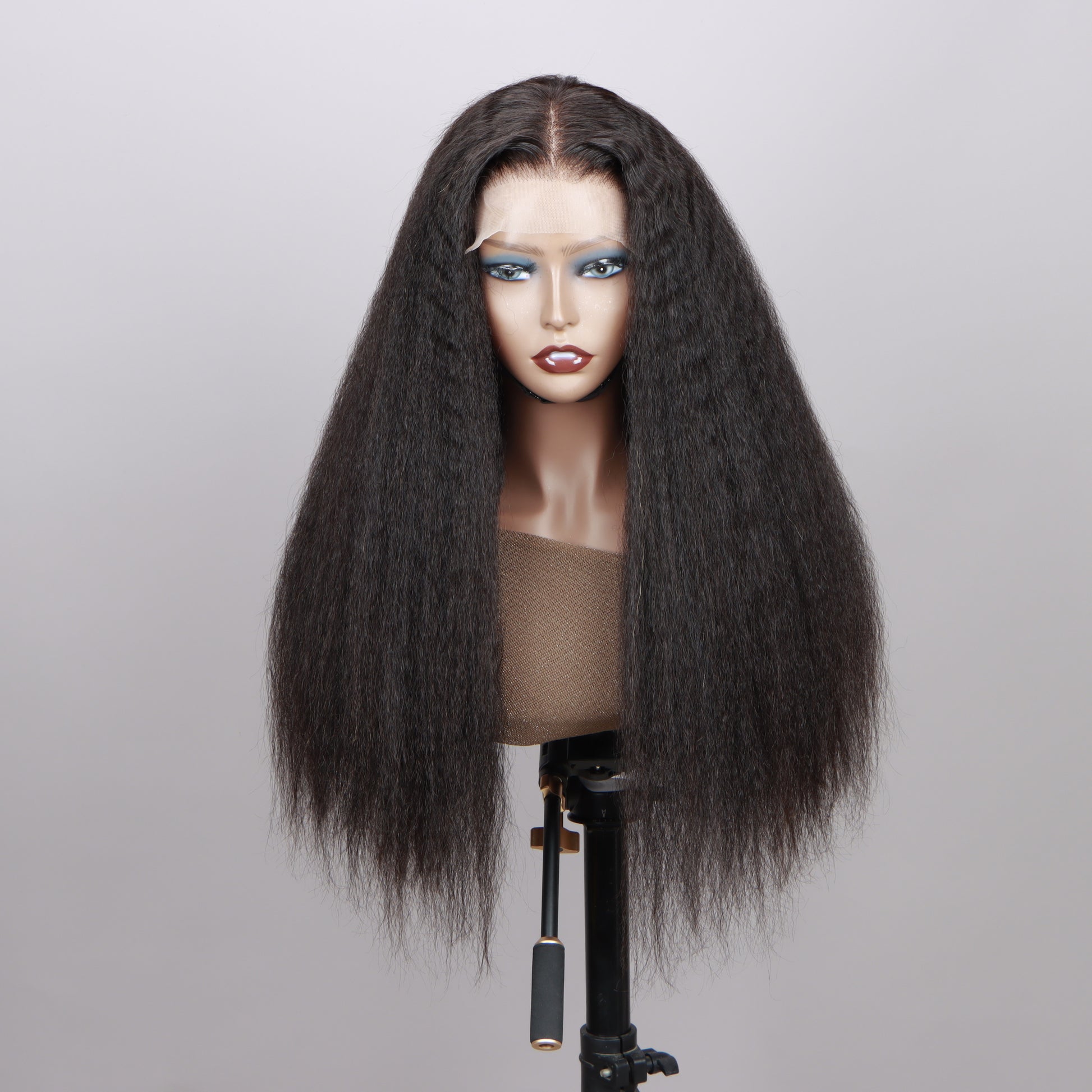 Elevate your look with our Glueless Kinky Straight Wig. This wig features a 13x6 HD lace that ensures a seamless, undetectable natural hairline, with a glueless design for ultimate convenience and comfort.
